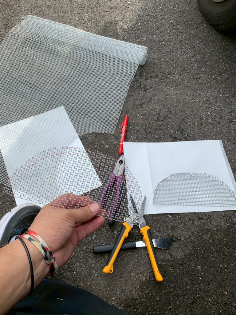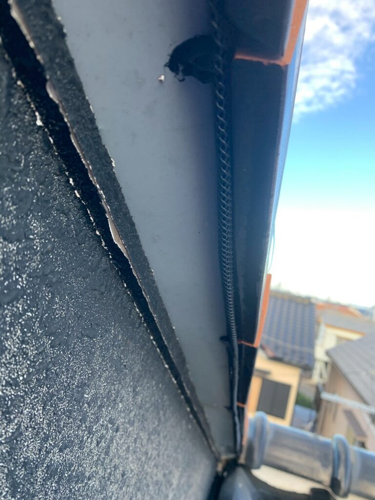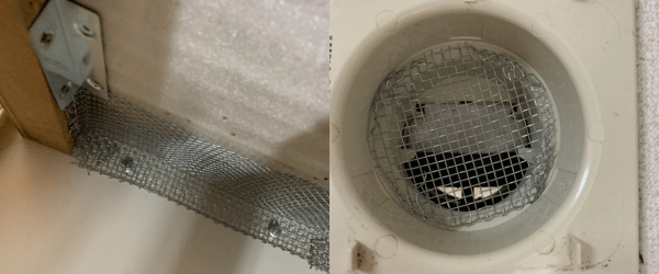 コウモリを駆除後、メッシュチューブで侵入口を封鎖しました。